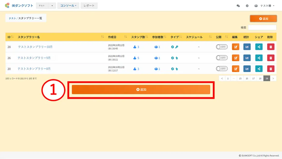 スタンプラリーのスケジュール設定方法のチュートリアルです。